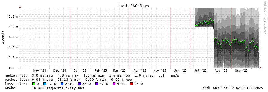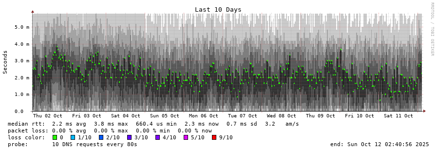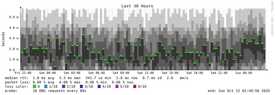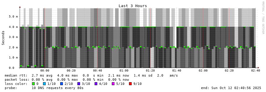 traceroute to 1.1.1.1 (1.1.1.1), 30 hops max, 60 byte packets - Generated at 2025-10-12 02:30:01 3 > 4 > 108.162.243.19 (108.162.243.19) [AS13335] 1.024ms 1.344ms 1.077ms 5 > one.one.one.one (1.1.1.1) [AS13335] 0.644ms 0.611ms 0.578ms