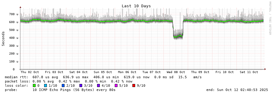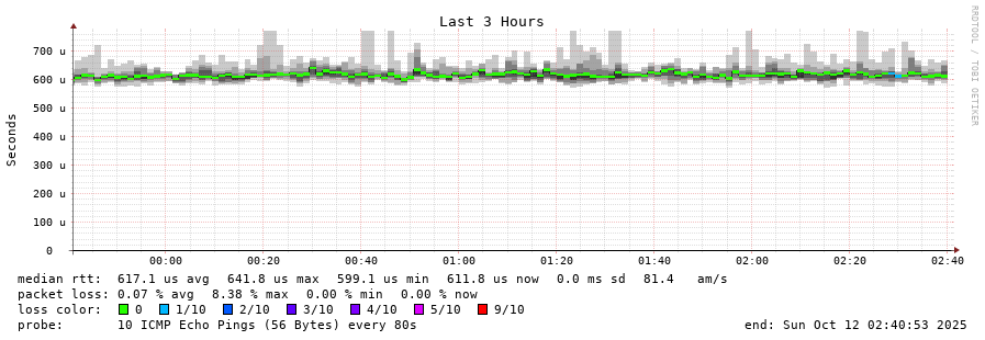 traceroute to 1.1.1.1 (1.1.1.1), 30 hops max, 60 byte packets - Generated at 2025-10-12 02:30:01 3 > 4 > 108.162.243.19 (108.162.243.19) [AS13335] 3.272ms 2.995ms 5.185ms 5 > one.one.one.one (1.1.1.1) [AS13335] 0.632ms 0.615ms 0.639ms