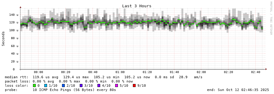 traceroute to ns1.wordpress.com (198.181.116.9), 30 hops max, 60 byte packets - Generated at 2025-10-12 02:30:01 3 > six.automattic.net (206.81.81.70) [*] 0.262ms 0.212ms 0.182ms 4 > ns1.wordpress.com (198.181.116.9) [AS2635] 0.110ms 0.116ms 0.088ms
