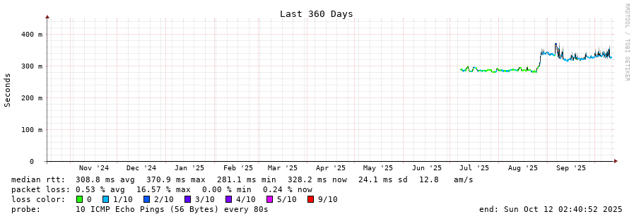 14 > 180.87.175.33 (180.87.175.33) [AS6453] 286.975ms 287.269ms 287.407ms