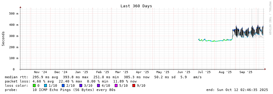 13 > 180.179.44.1 (180.179.44.1) [AS17439] 281.288ms 281.261ms 281.492ms