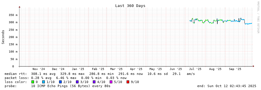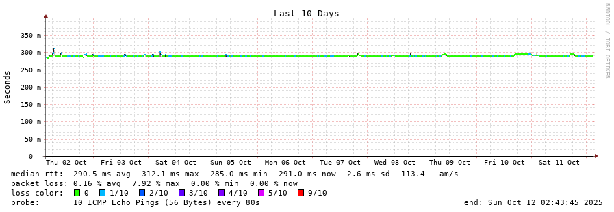 19 > ve955.core1.kul1.he.net (184.104.197.102) [AS6939] 292.026ms 291.981ms 291.980ms