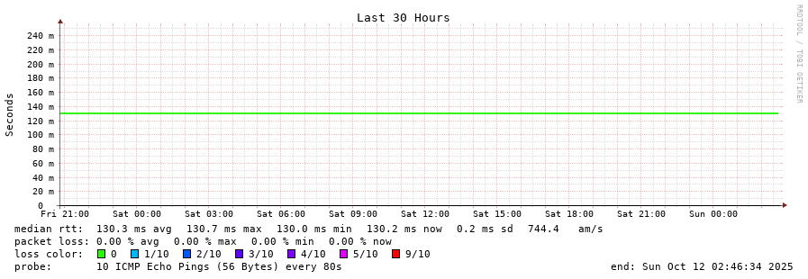 12 > 163.139.136.69 (163.139.136.69) [AS2519] 130.744ms 130.669ms 130.757ms