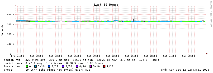 12 > ntp2.tpgi.com.au (203.26.24.6) [AS7545] 327.705ms 327.614ms 327.621ms