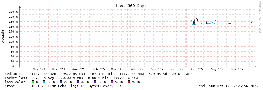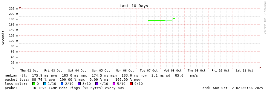 traceroute to 2001:690:1fff:1600:eade:27ff:fec9:67ec (2001:690:1fff:1600:eade:27ff:fec9:67ec), 30 hops max, 80 byte packets - Generated at 2025-10-12 02:15:01