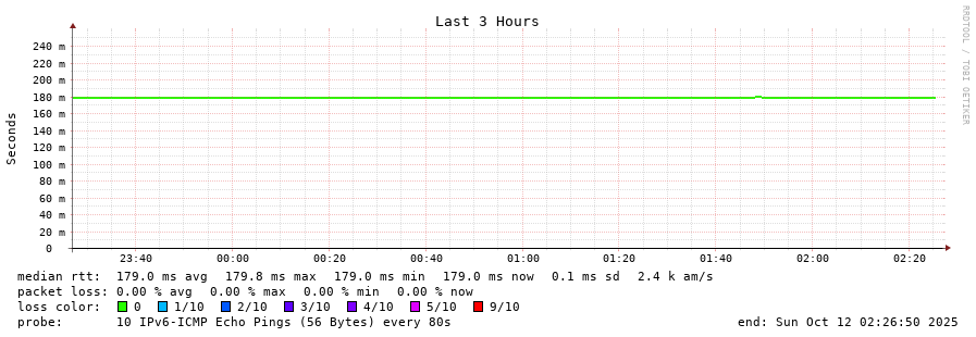 16 > 2001:978:2:5e::17:1 (2001:978:2:5e::17:1) [AS174] 179.395ms 179.345ms 179.357ms
