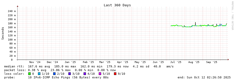 traceroute to 2a05:9f04:16:10::65 (2a05:9f04:16:10::65), 30 hops max, 80 byte packets - Generated at 2025-10-12 02:15:01