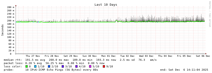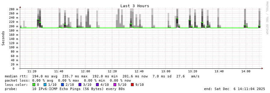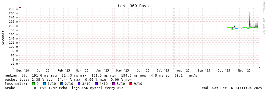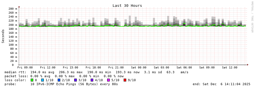 traceroute to 2a0c:9a40:8610:e3f::1 (2a0c:9a40:8610:e3f::1), 30 hops max, 80 byte packets - Generated at 2025-12-06 14:00:02