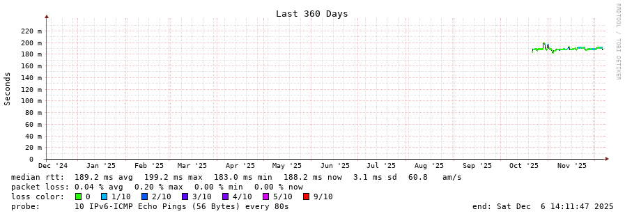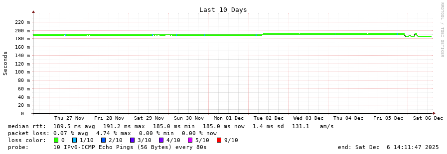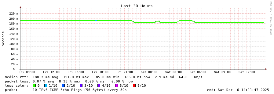 17 > 2a02:2f00:8708::b7 (2a02:2f00:8708::b7) [AS8708] 176.532ms 185.424ms 176.659ms