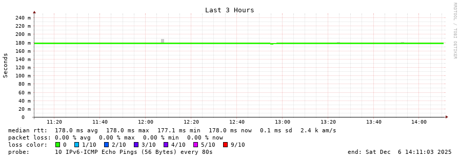 11 > 2a0b:2f00:0:900::180 (2a0b:2f00:0:900::180) [AS48112] 176.095ms 175.605ms 175.436ms