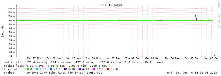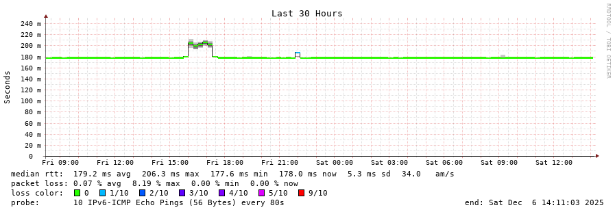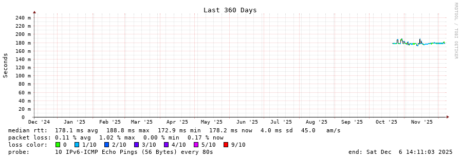 traceroute to 2a0b:2f00:0:234::151 (2a0b:2f00:0:234::151), 30 hops max, 80 byte packets - Generated at 2025-12-06 14:00:02