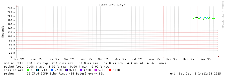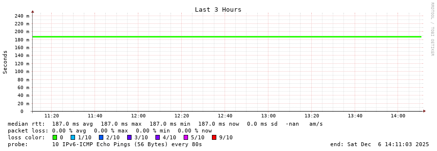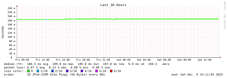 traceroute to 2a03:8f84::f1b6:9702:29c:9062 (2a03:8f84::f1b6:9702:29c:9062), 30 hops max, 80 byte packets - Generated at 2025-12-06 14:00:02