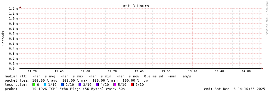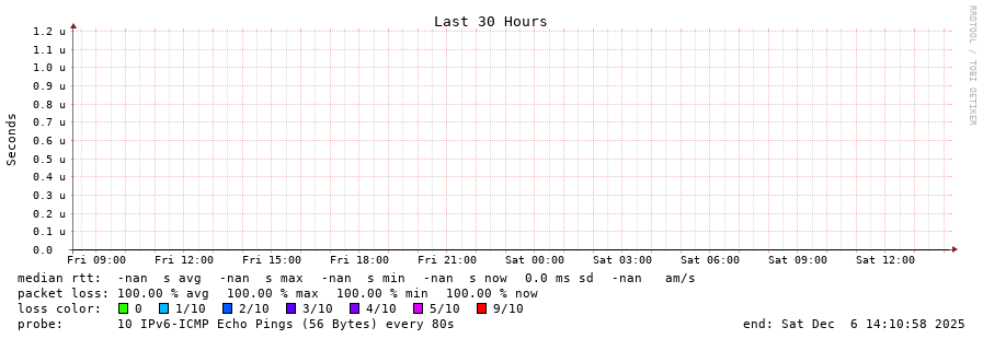 traceroute to fd9b:f75:a3d5::2 (fd9b:f75:a3d5::2), 30 hops max, 80 byte packets - Generated at 2025-12-06 14:00:02