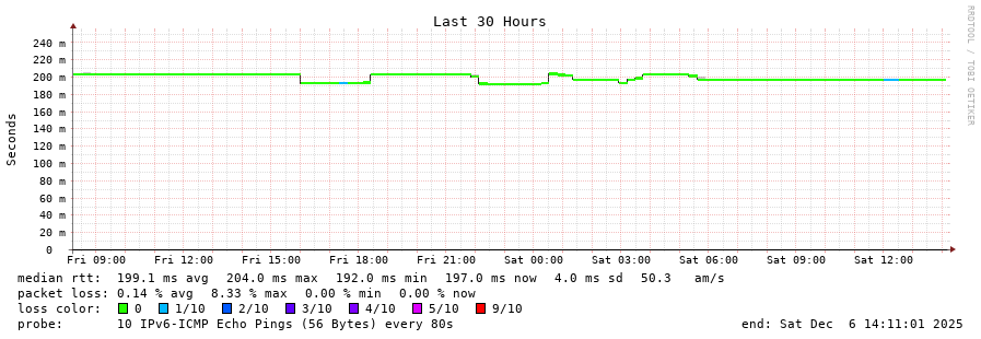 traceroute to 2001:67c:10:1102::11 (2001:67c:10:1102::11), 30 hops max, 80 byte packets - Generated at 2025-12-06 14:00:02