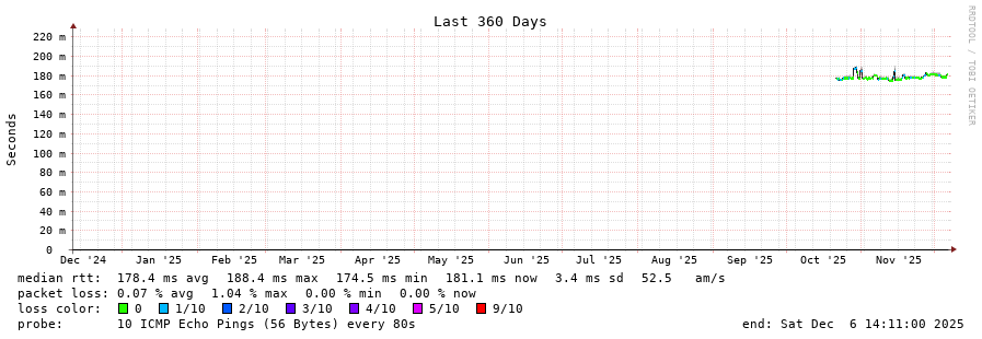 14 > vie-vie2-sbb1-8k.at.eu (54.36.50.189) [AS16276] 172.568ms 172.317ms 171.168ms