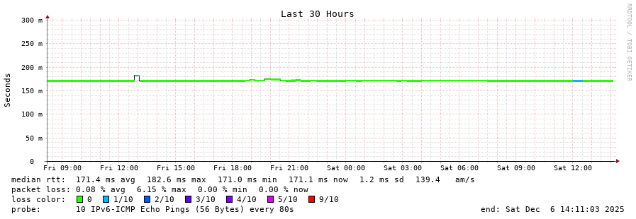traceroute to 2a03:bb40:1::b (2a03:bb40:1::b), 30 hops max, 80 byte packets - Generated at 2025-12-06 14:00:02