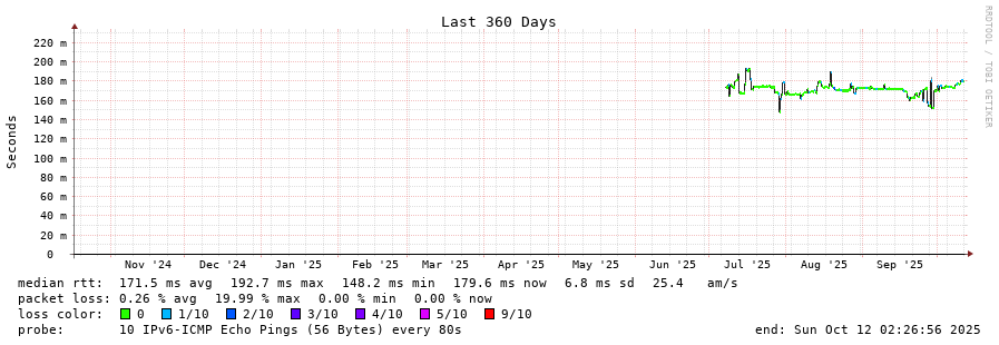 14 > 2a00:c561::4 (2a00:c561::4) [AS62416] 276.863ms 182.937ms 177.449ms