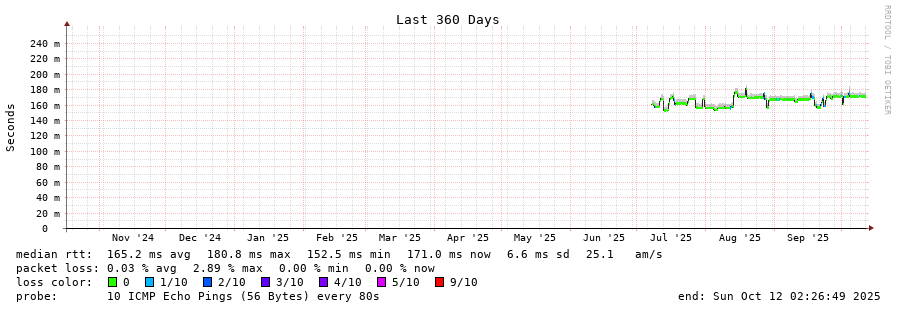 traceroute to 83.167.55.19 (83.167.55.19), 30 hops max, 60 byte packets - Generated at 2025-10-12 02:15:01