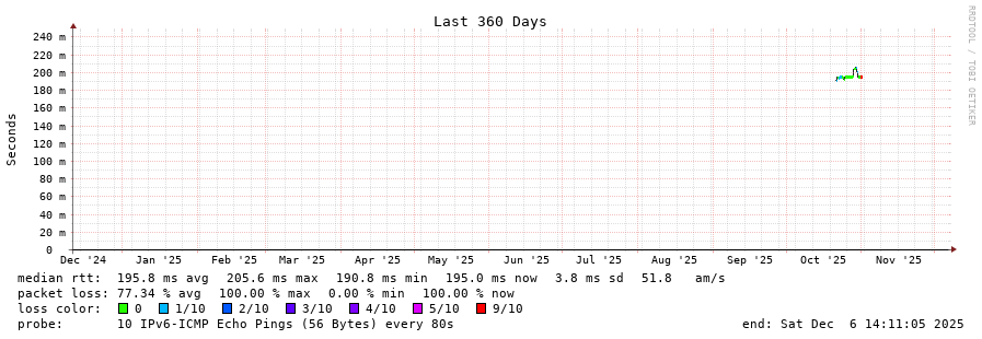 traceroute to 2a02:2f05:2113:7f00:220:4aff:fee0:220f (2a02:2f05:2113:7f00:220:4aff:fee0:220f), 30 hops max, 80 byte packets - Generated at 2025-12-06 14:00:02
