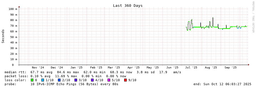 10 > 2604:2dc0:0:100::1:f805 (2604:2dc0:0:100::1:f805) [AS16276] 68.499ms 68.352ms 68.408ms