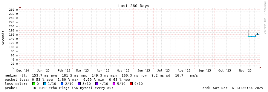 11 > 13786-dc4-ix.equinix.com (206.126.236.247) [AS5773] 75.961ms 76.045ms 75.852ms