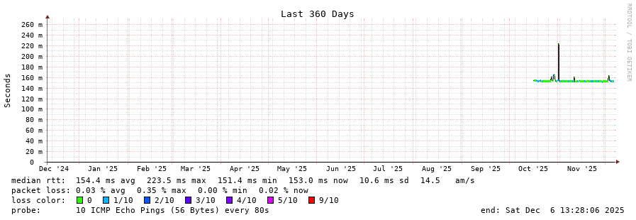traceroute to 130.250.228.10 (130.250.228.10), 30 hops max, 60 byte packets - Generated at 2025-12-06 13:15:01