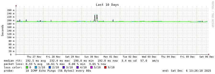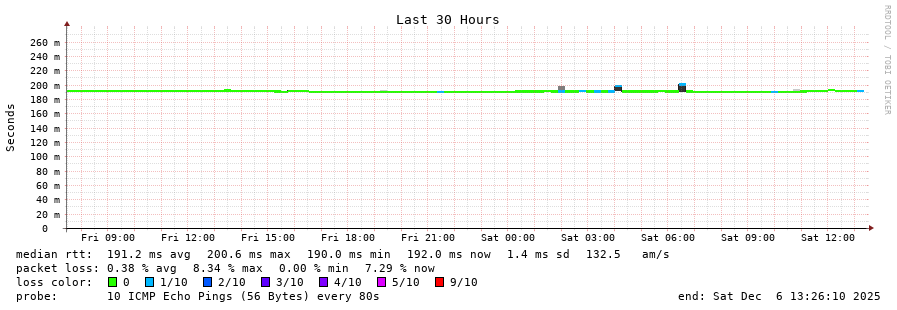 traceroute to 190.105.0.2 (190.105.0.2), 30 hops max, 60 byte packets - Generated at 2025-12-06 13:15:01