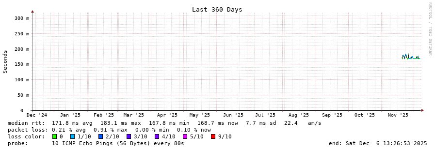 11 > 13786-dc4-ix.equinix.com (206.126.236.247) [AS5773] 75.899ms 75.935ms 75.992ms